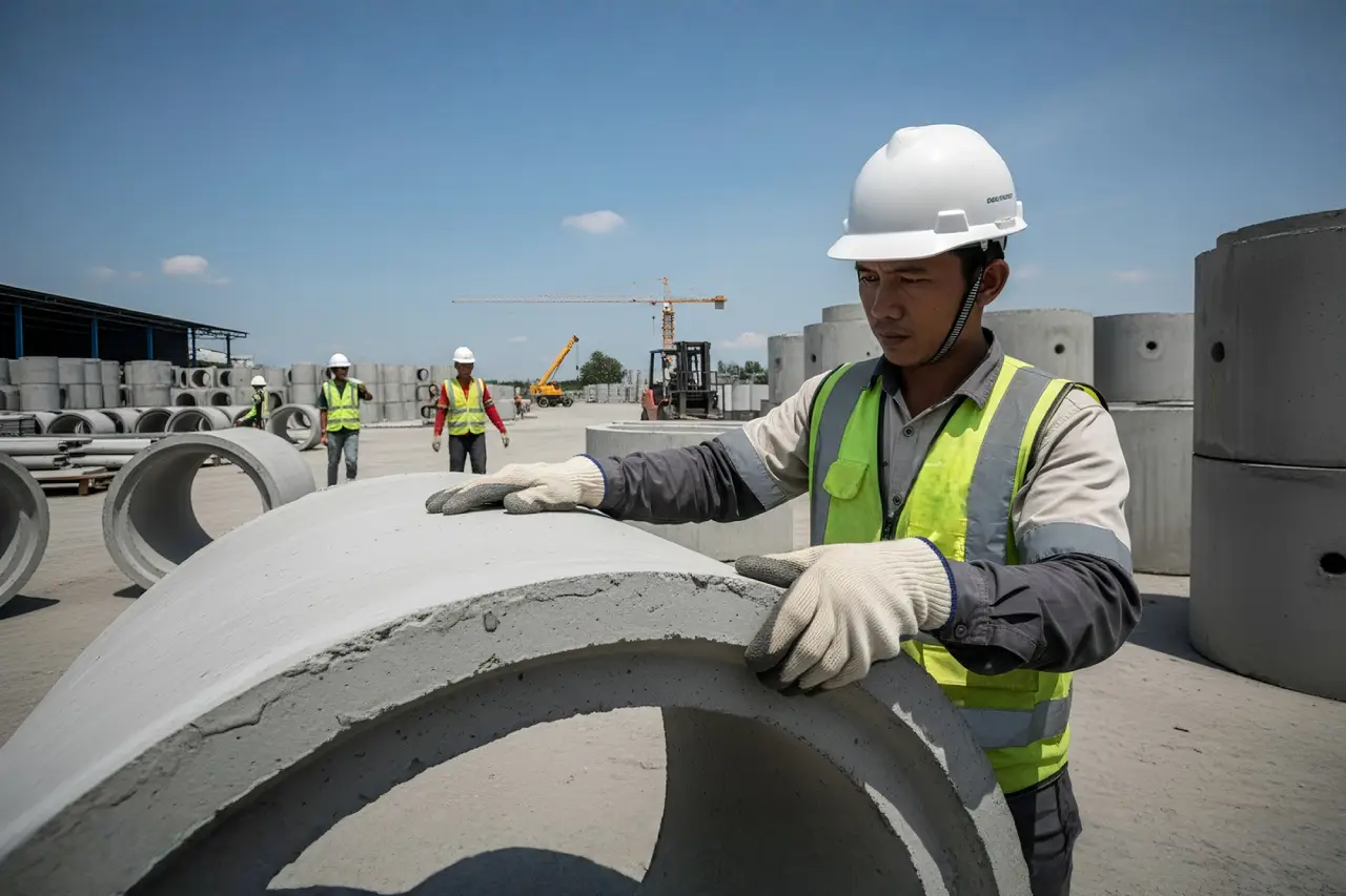 Pipa beton pracetak untuk berbagai keperluan konstruksi saluran air dan drainase.